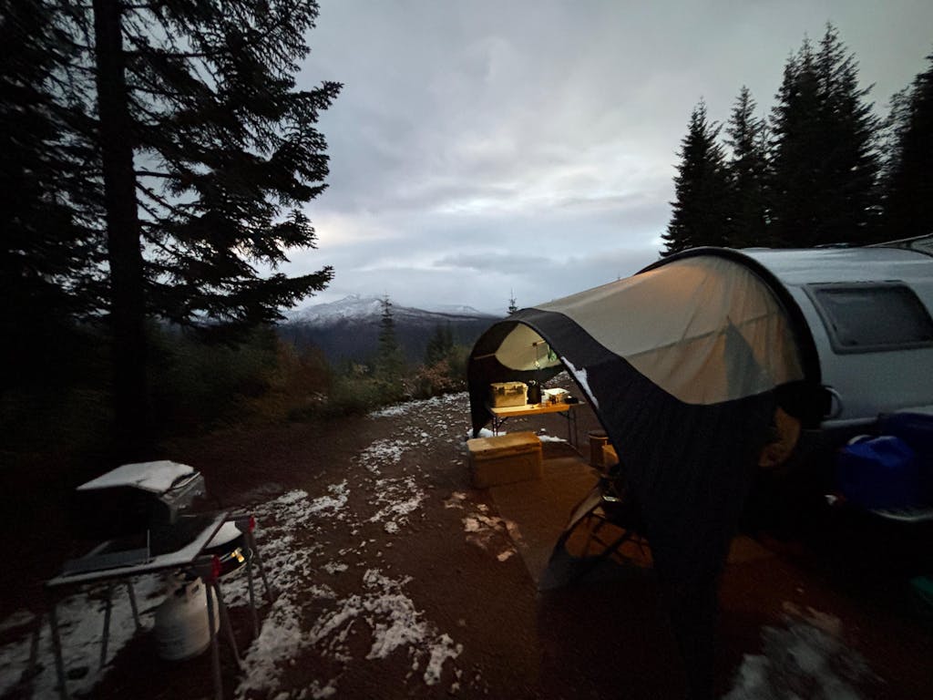 A sturdy and beautifully designed awning for the TAB 320 teardrop trailer! You will love the features of this awning that add an amazing 6 feet of additional shade. Super sharp-looking design to add an eye-catching addition to your setup. Built and designed for easy assembly. Pre-bent aluminum poles for the front perimeter for better performance in the wind. Comes with a nice canvas carry bag for super compact storage when not in use. Lightweight but very durable material. We offer these in Silver or White as the base color, then you can choose the color option to match your trailer or your taste. We do stock some of these main colors, however, most of these awnings will be 2 to 3 weeks till shipping time. Locally made here in Ohio.