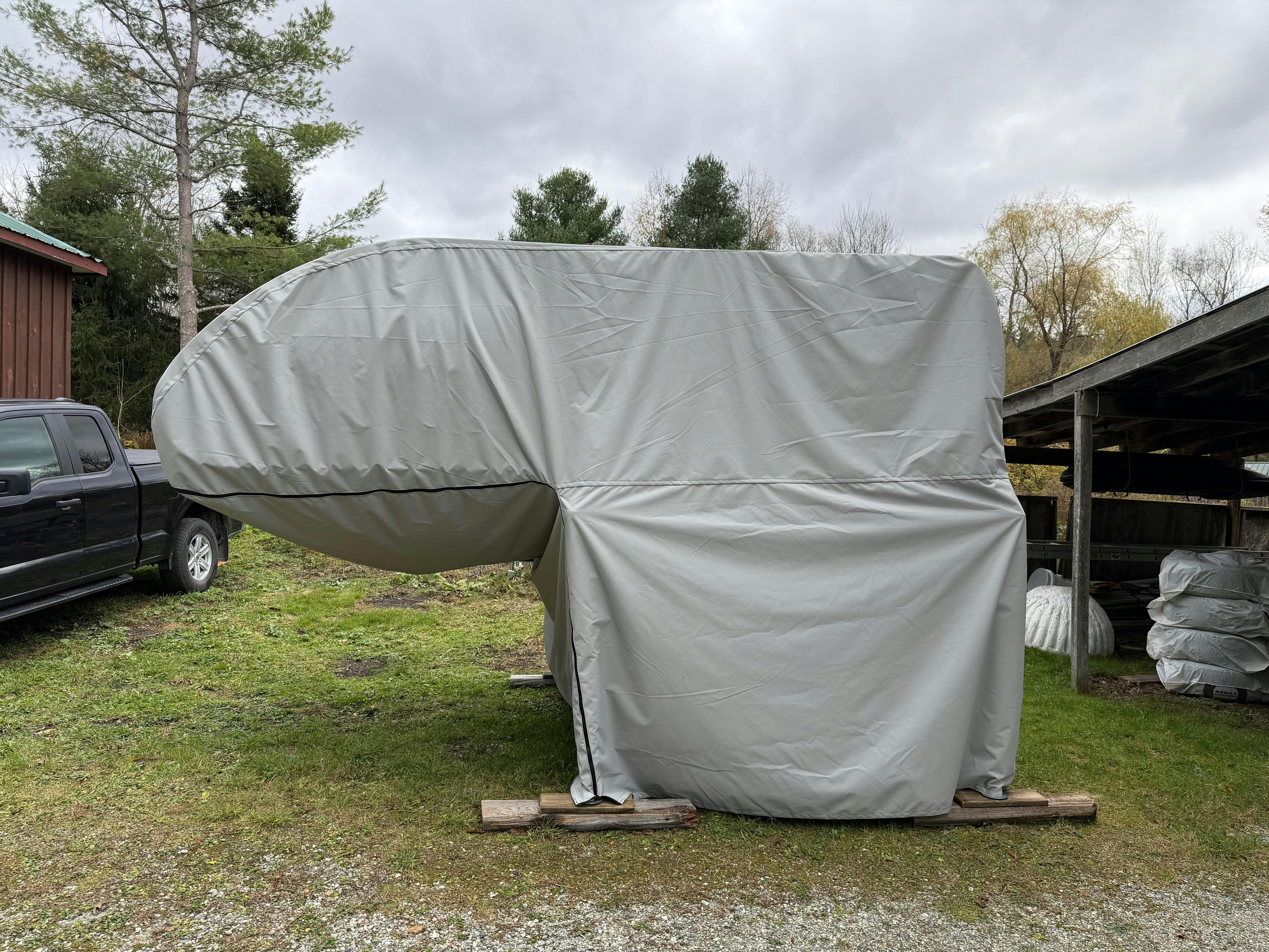 This Cover is custom made for the Cirrus Truck Camper 620 from NuCamp RV. A very high quality materiel with a glove like fit. It has a strong zipper to allow access to the door of the camper plus a zipper that perfects the fit around the neck of the camper. This keeps your cover from being able to blow off. Plus you have a strap that goes the full length under the camper and 2 straps going the full width of the camper. You will be very impressed with the durability of the fabric. Heavy duty cover that will last much longer then your average cover. Breathable fabric to ensure your camper won't sweat under the cover and avoid mold issues.